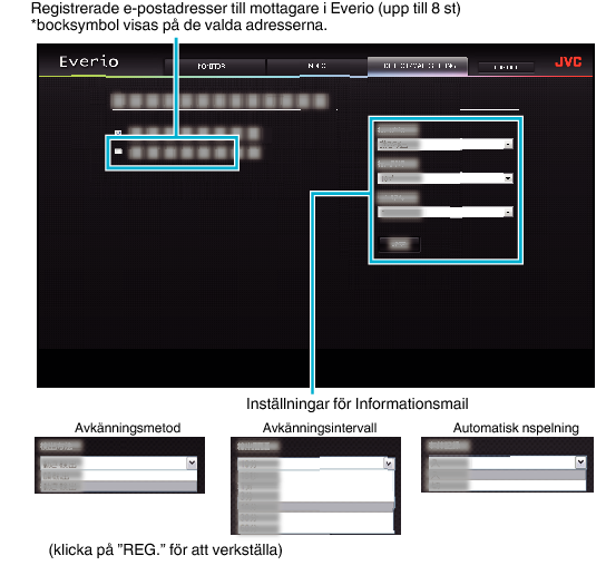 Inställningar för informationsmail som till exempel avkänningsmetod och mottagarens e-postadress kan ändras även om kameran är utom räckhåll.