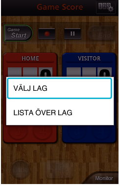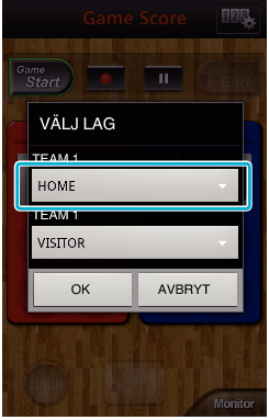 Lagets namn kan ställas in innan inspelning. (använd bokstäver och siffror)