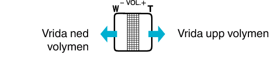 Man kan använda zoom-/volymspaken för att ändra volymen.