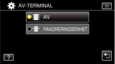 AV-uttaget är som standard inställd till ”AV”. För att använda panoreringsenheten ska man ändra inställningarna enligt beskrivning i nedanstående steg.