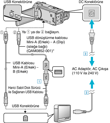 Harici sabit disk sürücüsüne bağlanırken aşağıda belirtildiği gibi bir USB kablosu kullanın. Bu birimle birlikte sağlanan USB kablosu kullanılamaz.