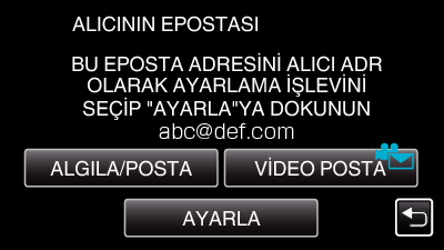 Kullanılan işleme bağlı olarak “ALGILA/POSTA„ ya da “VİDEO POSTA„ üzerine dokunduktan sonra “AYARLA„ üzerine dokunun.