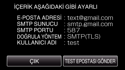 “ÇIK„ ya da “TEST EPOSTASI GÖNDER„ üzerine dokunun.