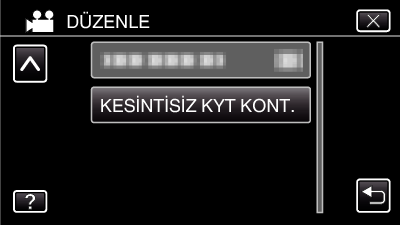 Önceki oturum tamamlandıktan sonra, kesintisiz kaydı yeniden başlatmak için, kesintisiz videoları birleştirmek ya da kesintisiz videoların birleştirme bilgilerini silmek gereklidir.