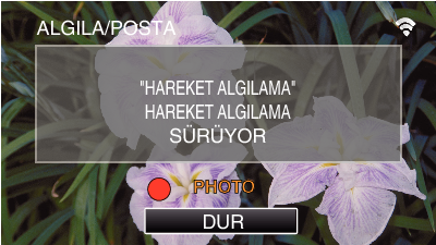 Kamera bir akıllı telefona (ya da bilgisayara) bağlandığında “ALGILA/POSTA AYARI„ geçici olarak kullanılamaz.