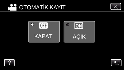 “OTOMATİK KAYIT„ öğesini seçmeden önce onu ayarlayın.