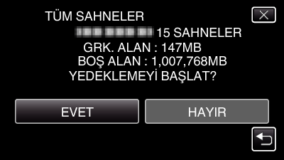 “EVET„ üzerine dokunulduğunda, yedekleme başlar.