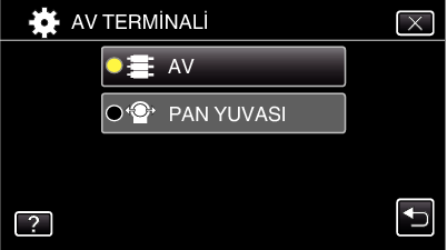 Bir pan yuvası kullanmak için “AV TERMİNALİ„ ayarını önceden değiştirin. Ayarı kameranın menü ekranından değiştirin.