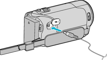 - 在室内进行长时间录制时,可以把本机与交流电适配器连接。