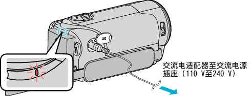 - 交流电适配器连接期间,您可以录制或播放视频。(录制或播放过程中无法给电池充电。)