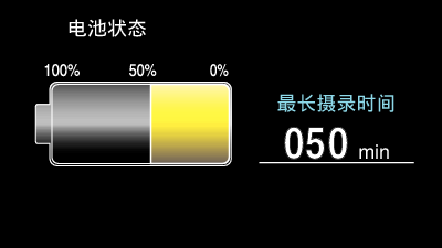 您可以查看SD卡上的剩余录制时间以及剩余电池电量。