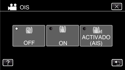 Se recomienda ajustar el estabilizador de imágenes en “OFF” cuando se filma un sujeto con poco movimiento utilizando la unidad sobre un trípode.