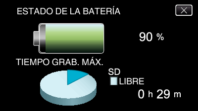 La carga restante de la batería y el tiempo de grabación restante son aproximados.