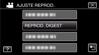 Cuando “REPROD. DIGEST” demora (más de 2 segundos) en comenzar luego de seleccionar el tiempo de Reproducción de extractos, aparecerá el estado de progreso.