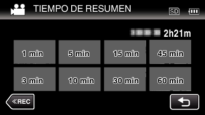 Seleccione el tiempo de reproducción de extractos en minutos (min).