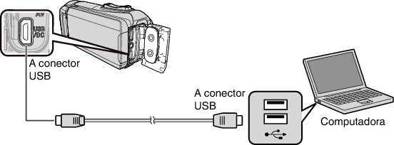 Cuando la cámara y la computadora están conectadas por un cable USB, los medios grabados son sólo de lectura.