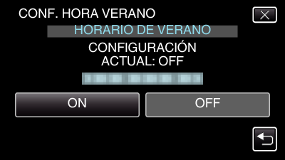 Si selecciona “ON” en “CONF. HORA VERANO” de “FECHA Y HORA”, la hora se ajusta 1 hora por adelantado.