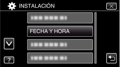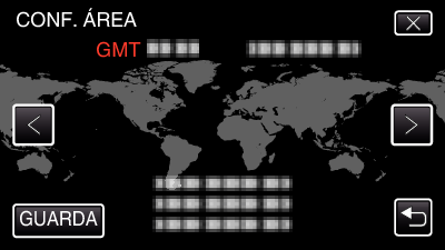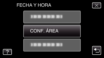 Cambie la visualización de la fecha y hora según la hora local seleccionando el destino en “CONF. ÁREA” de “FECHA Y HORA”.