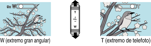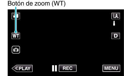 Toque el botón WT, a continuación mantenga pulsado el botón T (extremo telefoto) o W (extremo gran angular).