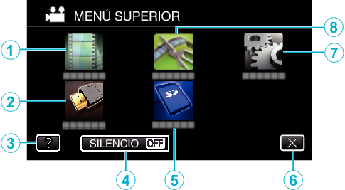 Pantalla de menú (modo de grabación)