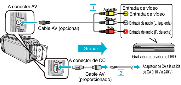 Se pueden copiar vídeos en calidad estándar si se conecta a una grabadora de vídeo.