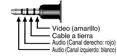 Las especificaciones de los cables (para vídeo/audio) del mini conector de 4 polos están descriptas a continuación.