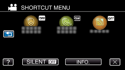 Du kan konfigurere de forskjellige innstillingene av de anbefalte funksjonene for video/stillbilde-opptaksmodus ved å bruke snarveimenyen.