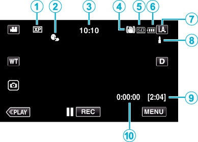 Wyświetla ikonę ustawienia „JAKOŚĆ WIDEO” wybranego w menu nagrywania. |