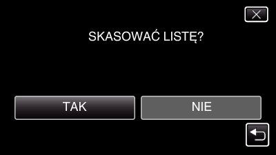 Po wybraniu „ANULOWANIE WSZYSTKICH” zostaną usunięte wszystkie utworzone listy odtwarzania.