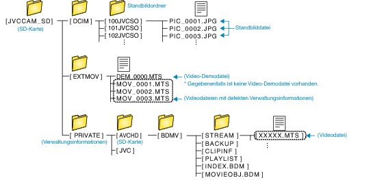 Ordner und Dateien werden wie unten dargestellt auf der SD-Karte erstellt.