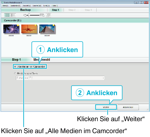 Stecken Sie vor dem Sichern die SD-Karte ein, auf der die Videos und Standbilder gespeichert wurden.