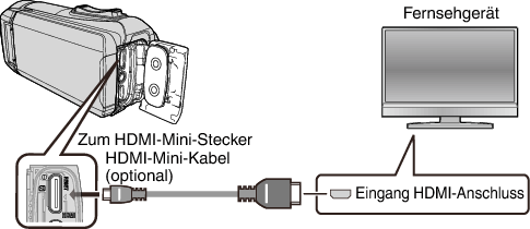 Wenn Sie ein HDTV-Gerät besitzen, kann die Wiedergabe in HD-Qualität erfolgen, sofern Sie den HDMI-Mini-Stecker zum Verbinden der Geräte verwenden.