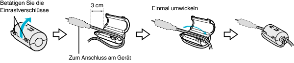 Bringen Sie einen Core Filter am AV-Kabel an, das an dieses Gerät angeschlossen ist.
