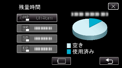 - 残量時間表示からも動画画質を変更できます。動画画質を選んでタッチしてください。