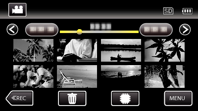 2秒以内に連続して撮影された静止画、または連写モードで撮影された静止画はグループ化されます。また、最初に撮影されたファイル(映像)のみ表示され、緑色の枠がつきます。このファイルをタッチすると、グループ化されたファイルの一覧画面が表示されます。削除したいファイルをタッチしてから、 "