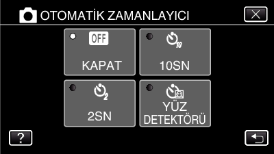 10 saniyelik otomatik zamanlayıcı ve Yüz Tanıma otomatik zamanlayıcısı, grup resimleri çekmede uygun işlevlerdir. 2 saniyelik otomatik zamanlayıcı, deklanşöre basmanın neden olduğu kamera titremesini önlemede yararlıdır.