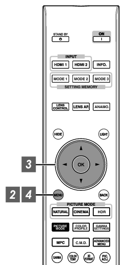 Die Daten können auch mit den Direkttasten auf der Fernbedienung abgerufen werden. Die Tasten [MODE1] bis [MODE3] entsprechen MEMORY 1 bis MEMORY 3.