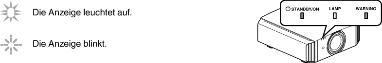 Anzeigen, die permanentes Leuchten/Blinken der „LAMP“-Anzeige nutzen. Die „STANDBY/ON“-Anzeige, die den Betriebsmodus des Geräts anzeigt, leuchtet wie oben beschrieben simultan.