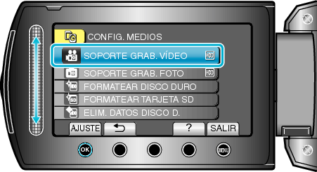 Seleccione “SOPORTE GRAB. VÍDEO” y presione