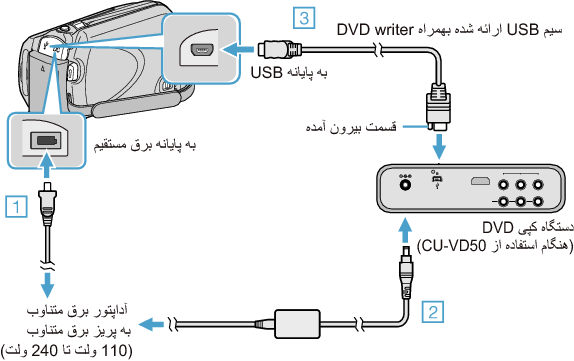 DVD های ایجاد شده در این دستگاه از طریق عملکرد تهیه نسخه پشتیبان را می توان با استفاده از DVD writer اختیاری با عملکرد پخش (CU-VD50) یا یک پخش کننده DVD معمولی، بر روی تلویزیون پخش کرد. همچنین با اتصال DVD writer اختیاری و با استفاده از عملکرد پخش (CU-VD50) می توانید آنها را بر روی این دستگاه پخش کنید.