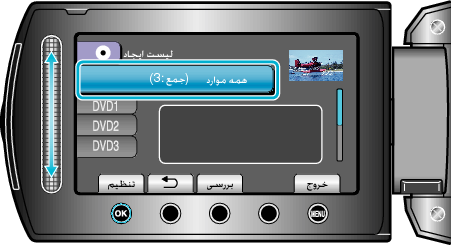 - لیستی از فهرست های پخش در منوی بالایی DVD ایجاد شده نمایش داده می شود.
