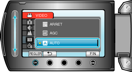 Sélectionnez le réglage souhaité puis appuyez sur