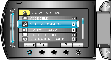 Sélectionnez “ARRET AUTOMATIQUE” et appuyez sur