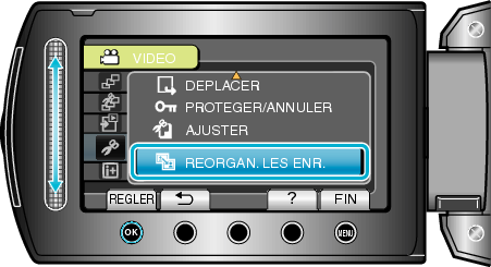 Sélectionnez “REORGAN. LES ENR.” et appuyez sur
