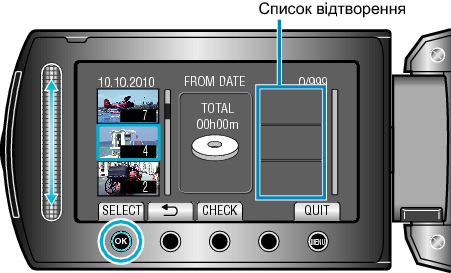 Виберіть дату зйомки, яку необхідно додати до списку відтворення, та натисніть