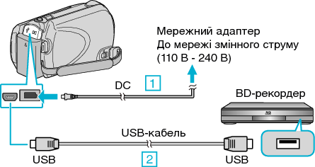 Ви можете створювати диски за допомогою пристрою для запису Blu-ray-дисків, підключивши його до цієї камери через USB-кабель.