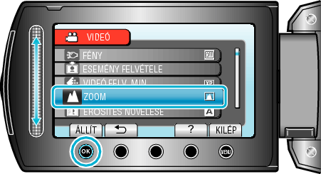 Válassza ki a(z) „ZOOM” elemet és érintse meg az