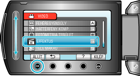 Válassza ki a(z) „EFFEKTUS” elemet és érintse meg az