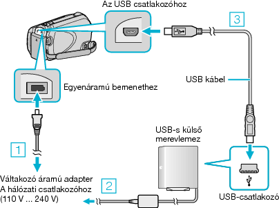 Csatlakoztassa a váltakozó áramú adaptert a külső USB-s merevlemezhez.