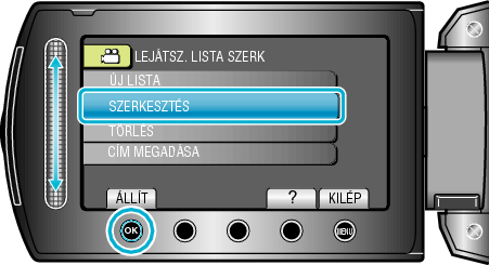 Válassza ki a(z) „LEJÁTSZ. LISTA SZERK” elemet és érintse meg az
